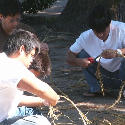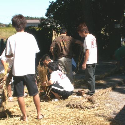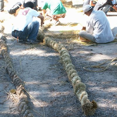 本当は場ならしでなくて、一週間前です。管理人さんが藁でしめ縄を結ってきます。