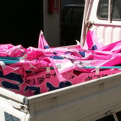 こちらは中老さん。のぼりを立てに行きます。