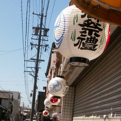 大通り沿いに 提灯を並べてつるす。