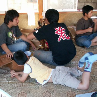 これこれ小学生。 稽古中に腹ばいはだめだぞ!